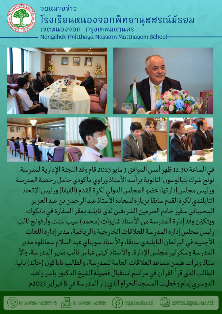 คณะผู้บริหารโรงเรียนหนองจอกพิทยานุสสรณ์มัธยม เยี่ยมคารวะเอกอัครราชทูตซาอุดีอาระเบียประจำประเทศไทย กิจกรรม