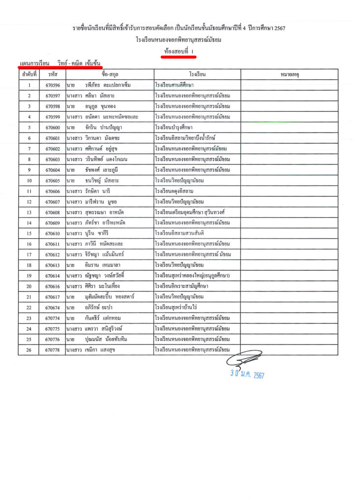 ประกาศรายชื่อนักเรียนที่มีสิทธิ์สอบคัดเลือกเข้า ม.4 ปีการศึกษา 2567 โดยจะดำเนินการสอบคัดเลือกในวันอาทติย์ที่ 4 กุมภาพันธ์ 2567 เวลา 07.30 น. – 14.00 น. นักเรียนทุกคนต้องลงทะเบียน ภายในเวลา 07.30 น. และต้องอยู่ในโรงเรียนจนกว่าจะสอบแล้วเสร็จในเวลา 14.00 น. การสอบสัมภาษณ์นักเรียนต้องสอบพร้อมผู้ปกครอง ***ต้องมี Portfolio (แฟ้มสะสมผลงาน)***
