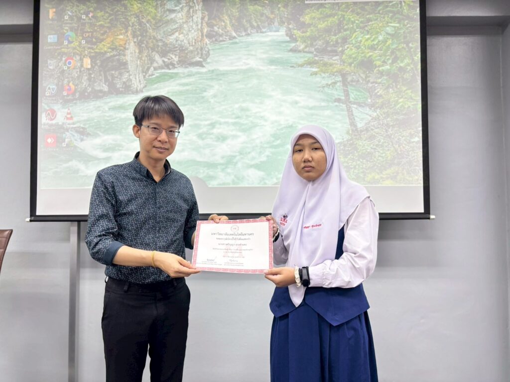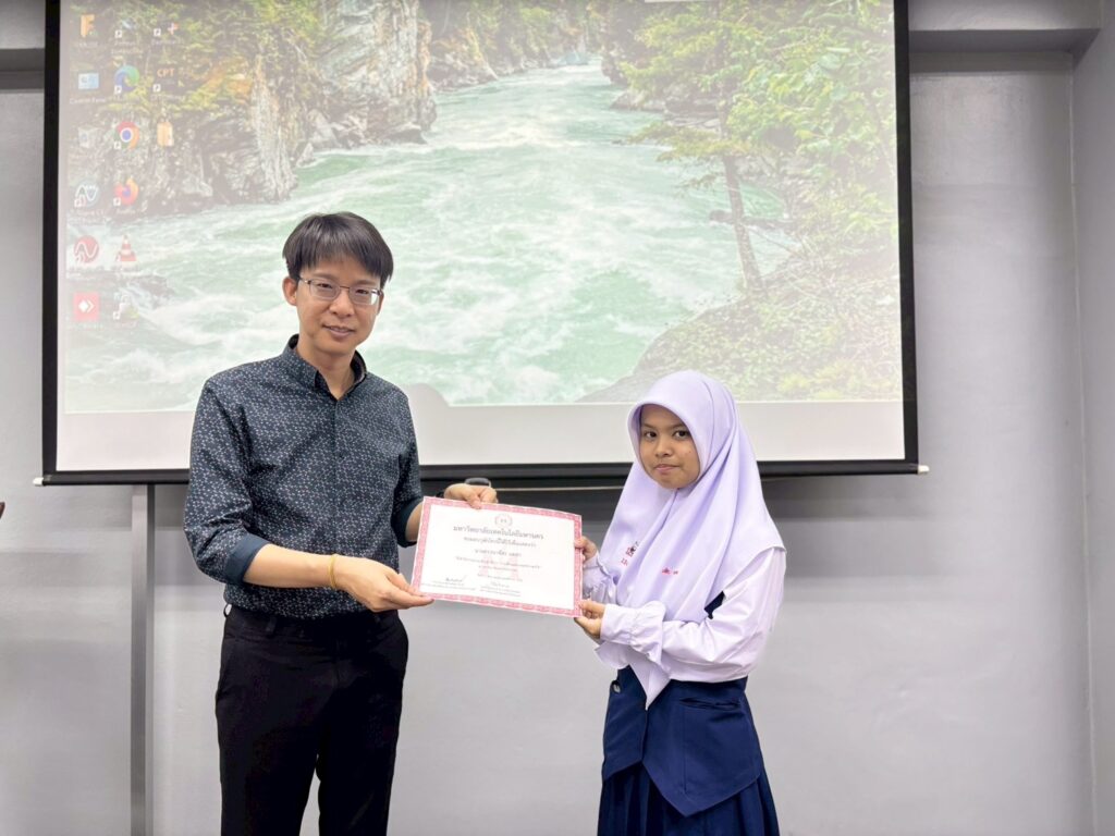 การอบรมครั้งนี้ ได้รับเกียรติจาก ดร.ชิตวันพัทณ์ วีระสัย ผู้อำนวยการ สำนักฝึกอบรมและพัฒนาทรัพยากรมนุษย์ มหาวิทยาลัยเทคโนโลยีมหานคร และมีคุณครูผู้กำกับดูแลนักเรียนจำนวน 3 คน ประกอบด้วย 1) อ.ฟ้าวลัย มีมูซอ 2) อ.วันดี อยู่สำราญ 3) อ.ภาวริณ บุญเพ็ง และนักเรียนระดับชั้น ม.3-ม.6 จำนวน 22 คน