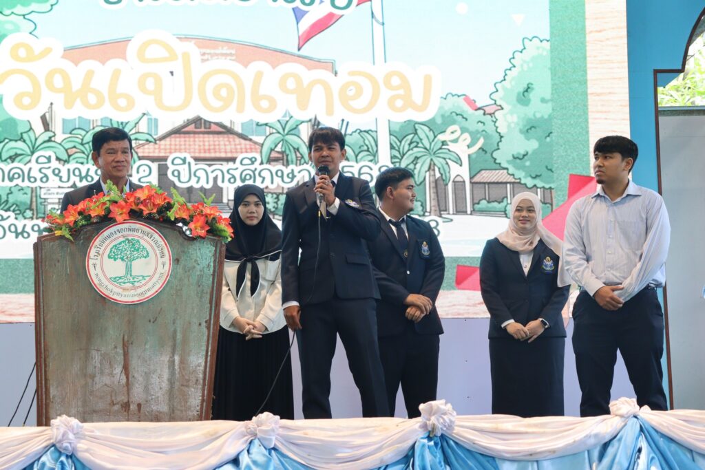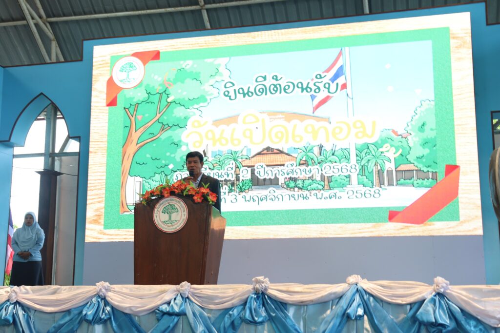 ผู้อำนวยการสุวินัย สมันเลาะ กล่าวแสดงความยินดีและต้อนรับนักเรียนทุกคนกลับสู่บ้านหลังที่สองของเราด้วยความยินดียิ่ง และชื่นชมนักเรียนทุกคนที่ได้ตั้งใจเรียนรู้และเก็บเกี่ยวประสบการณ์อันมีค่าตลอดภาคเรียนที่ผ่านมาสำหรับภาคเรียนที่ 2 นี้ คือโอกาสครั้งสำคัญที่เราจะได้ ต่อยอด ความสำเร็จจากภาคเรียนแรก และ พัฒนา ตนเองในส่วนที่ยังต้องปรับปรุงต่อไปปลูกฝังเกี่ยวกับค่านิยมหลัก 5 ประการ ของโรงเรียน 1. ศรัทธา 2. มารยาทดี 3. มีเป้ามหมาย 4. พึ่งพาตนเองได้ 5. ให้ประโยชน์แก่สังคม จำไว้เสมอว่า ความสำเร็จไม่ได้มาจากการรอคอย แต่มาจากการลงมือทำอย่างต่อเนื่อง หากมีอุปสรรคใด ๆ ขอให้นักเรียนมีความมุ่งมั่น ไม่ย่อท้อและให้ครูทุกคนเป็นเสมือนโค้ชที่จะคอยให้คำแนะนำและสนับสนุน” ขอให้ภาคเรียนที่ 2 ปีการศึกษา 2568 เป็น ภาคเรียนแห่งความสุข ความตั้งใจ และความสำเร็จ ของนักเรียนทุกคน”และในโอกาสนี้ ผู้อำนวยการ แนะนำบุคลากรสำคัญที่จะมาช่วยเสริมความแข็งแกร่งทางวิชาการของเราในภาคเรียนนี้ คือ นักศึกษาฝึกประสบการณ์วิชาชีพครู (หรือ ครูฝึกสอน) จำนวน 4 ท่านด้วยกัน