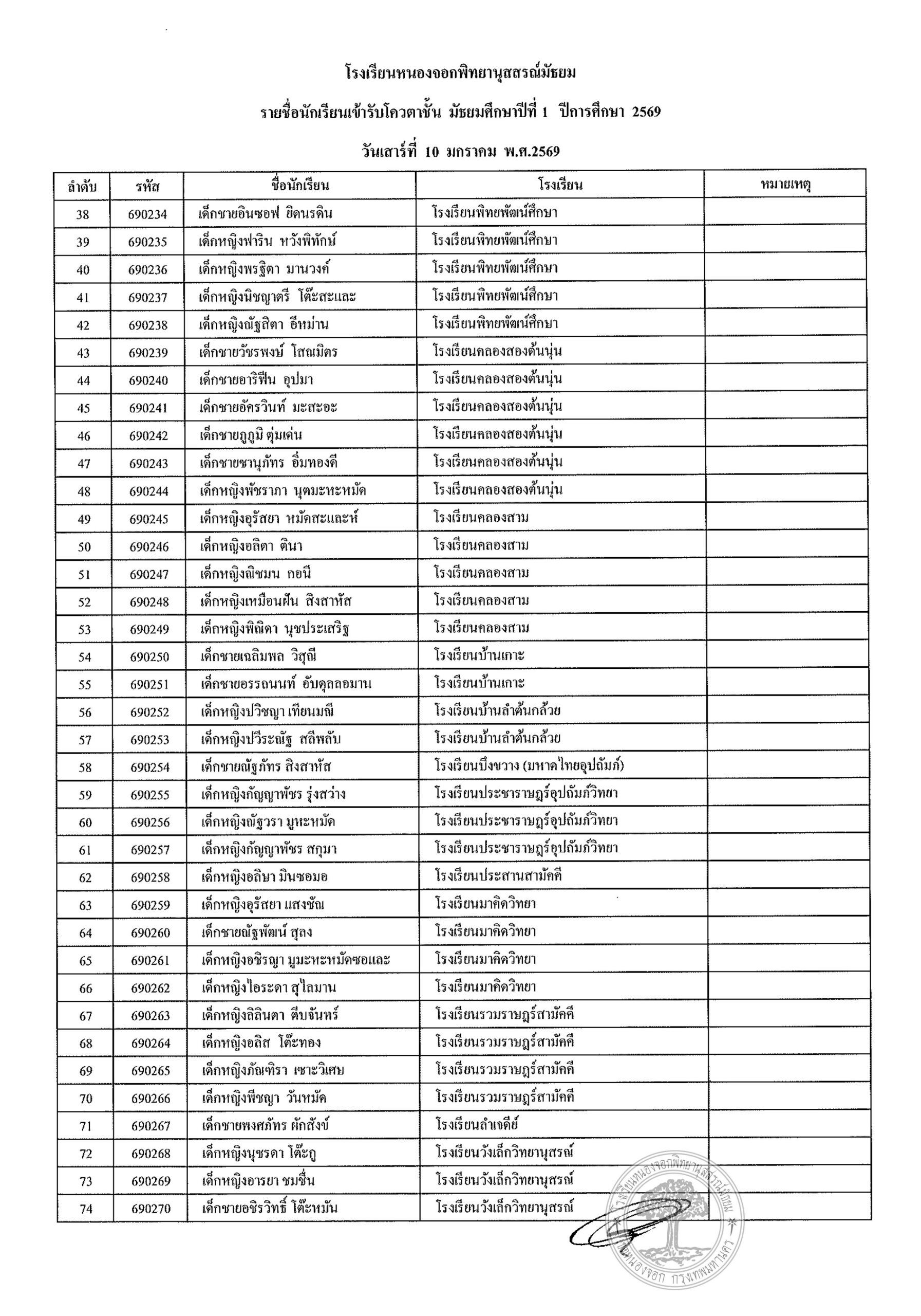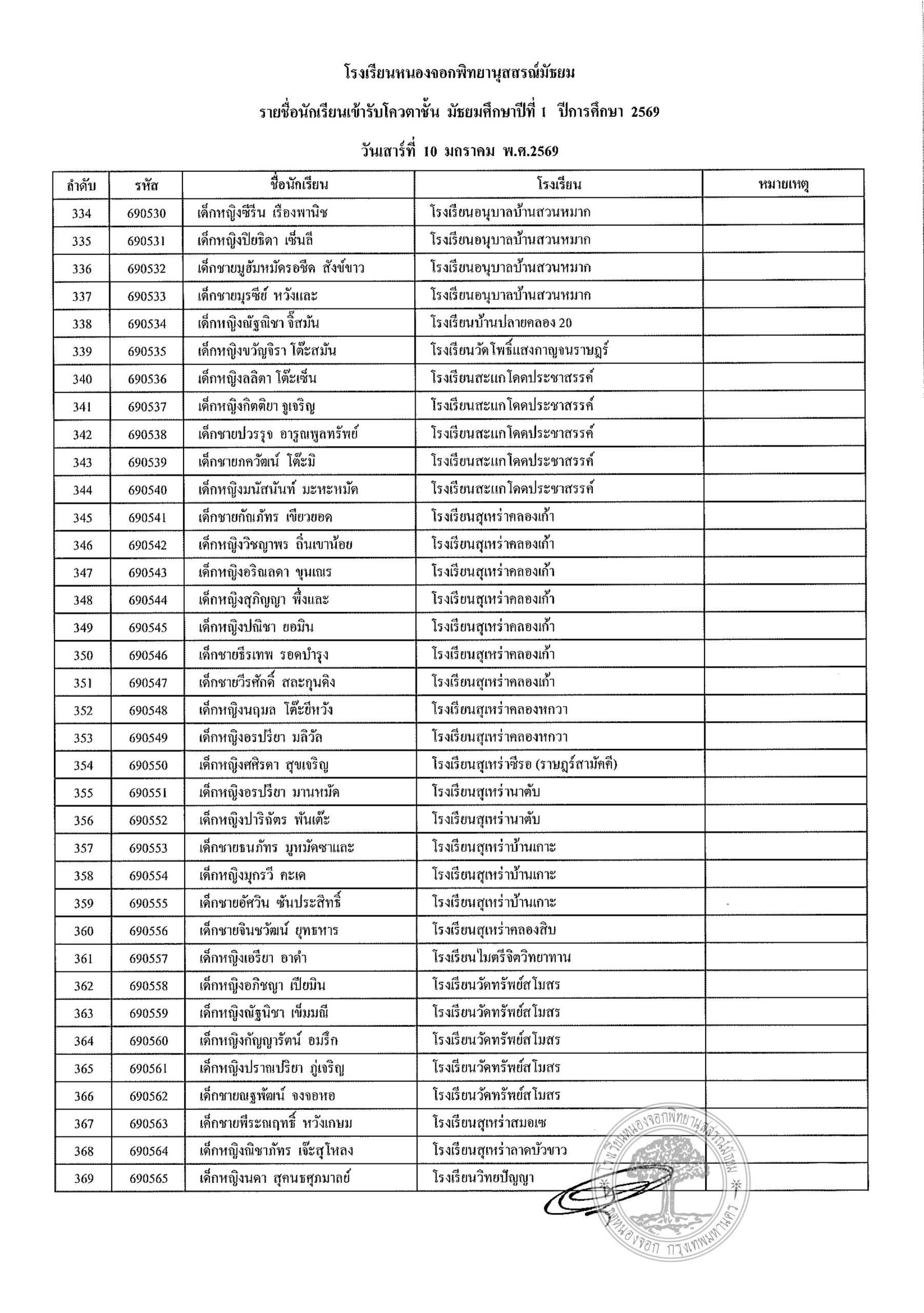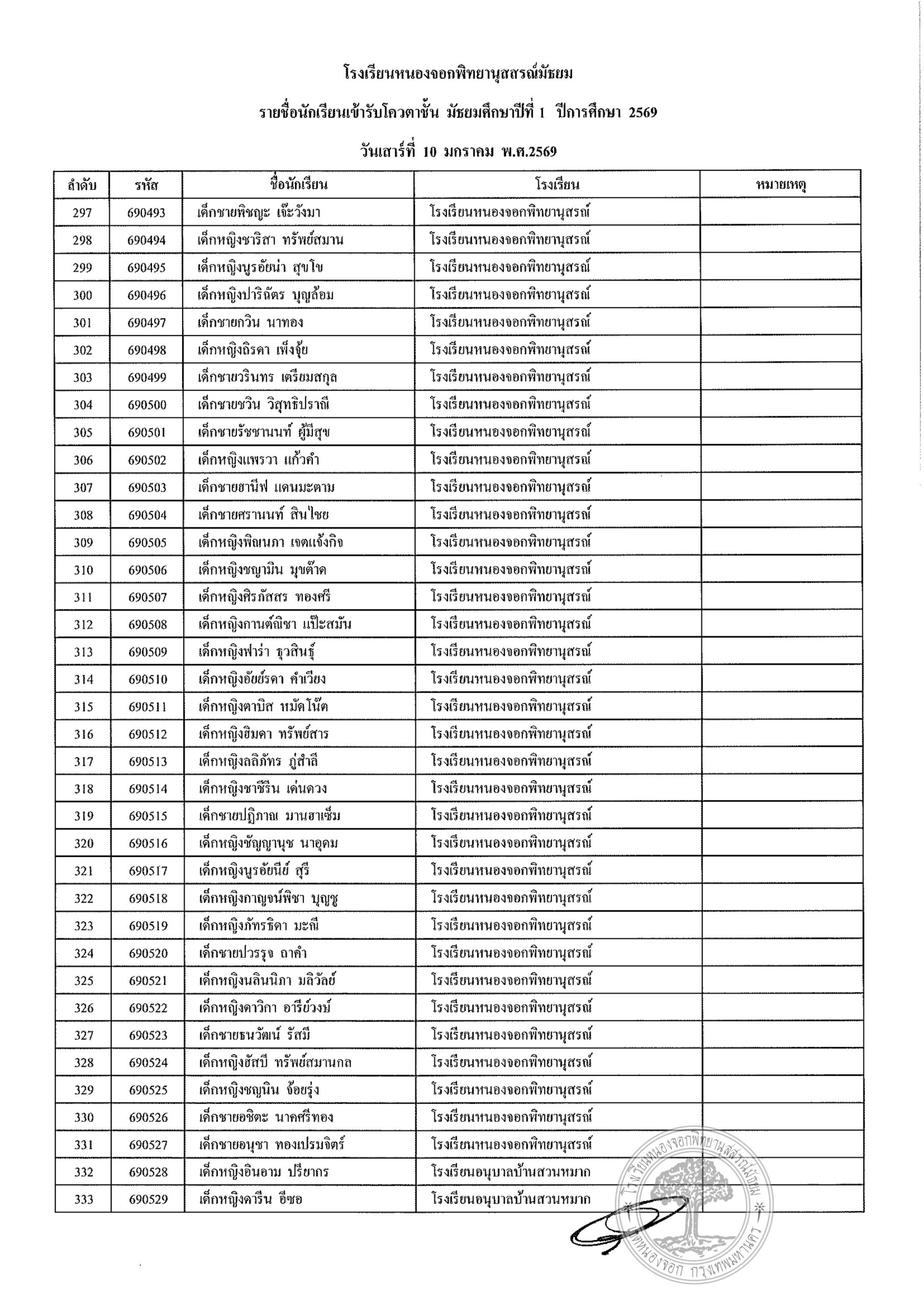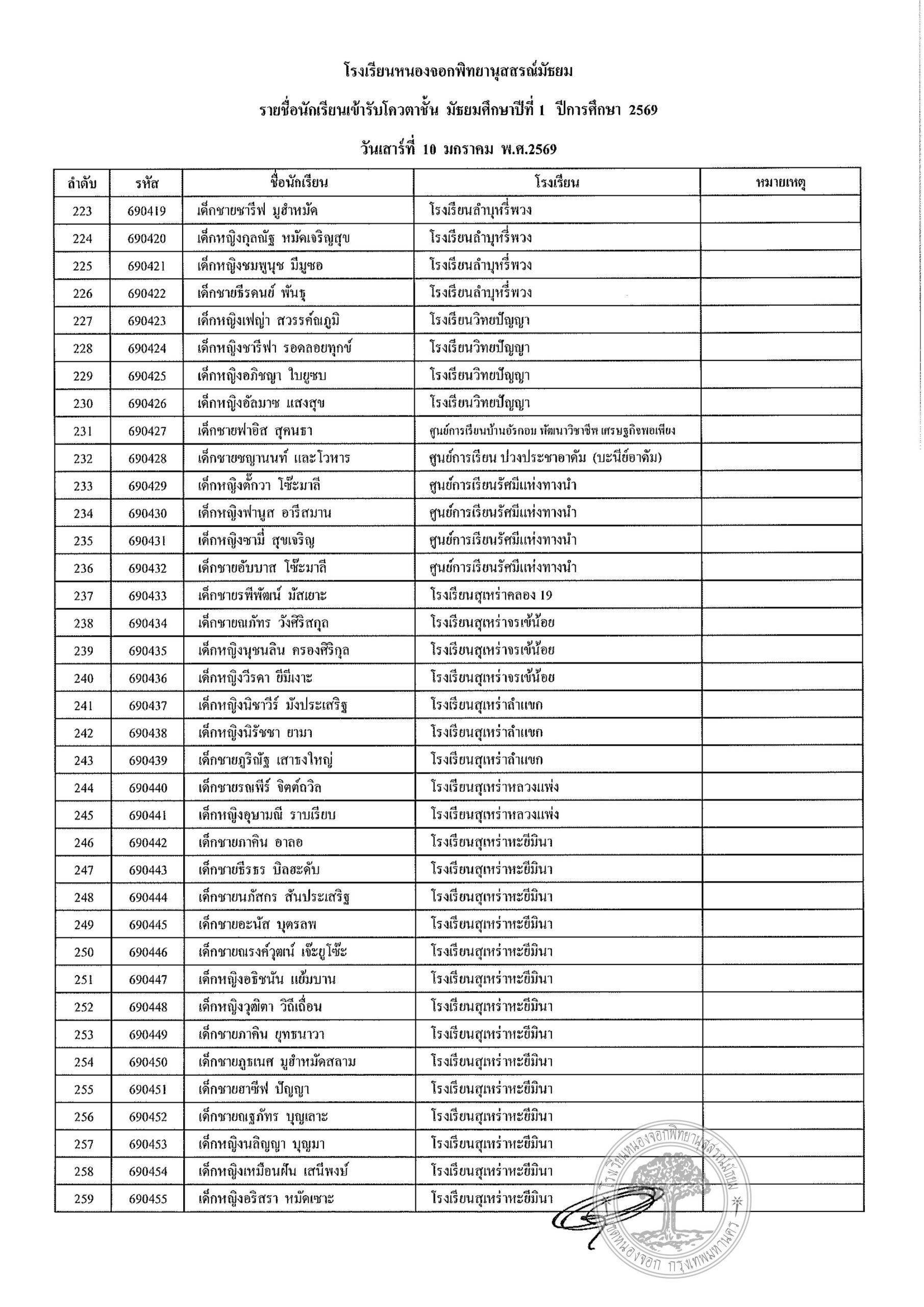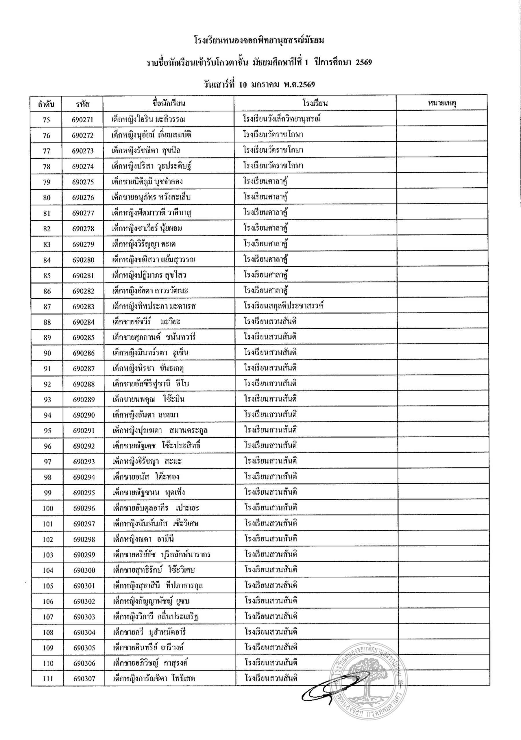 ประกาศรายชื่อนักเรียนประเภทโควตา ระดับชั้นมัธยมศึกษาปีที่ 1 ปีการศึกษา 2569รายงานตัววันเสาร์ที่ 10 มกราคม 2569 เวลา 08.00 น. – 12.00 น. (ปิดรับลงทะเบียน 11.30 น.)ณ อาคาร 4 โรงเรียนหนองจอกพิทยานุสสรณ์มัธยม นักเรียนต้องมาพร้อมผู้ปกครอง ***มีค่าใช้จ่าย***ค่าเล่มระเบียบการ 120 บาท(หนึ่งร้อยยี่สิบบาทถ้วน) ***ไม่รับโอน***รบกวนเตรียมมาให้พอดี