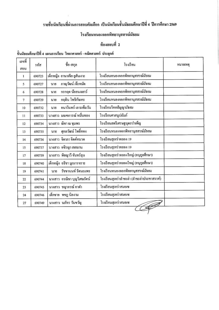 ***นักเรียนที่สอบไม่ผ่านสามารถเขียนคำร้องยื่อภายในวันที่ 5 – 9 กุมภาพันธ์ 2569***